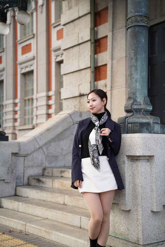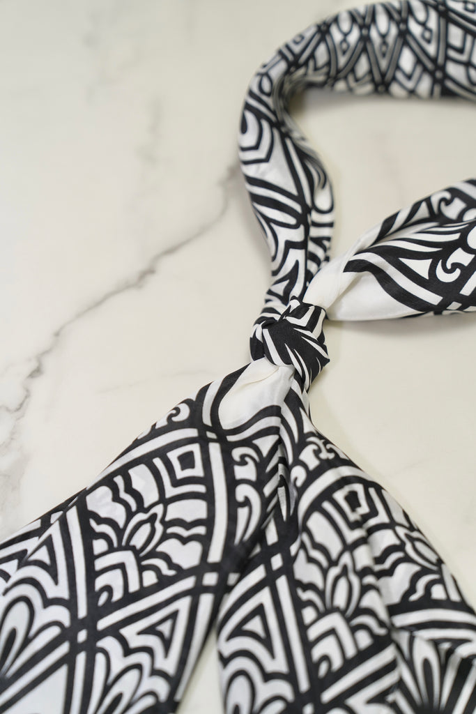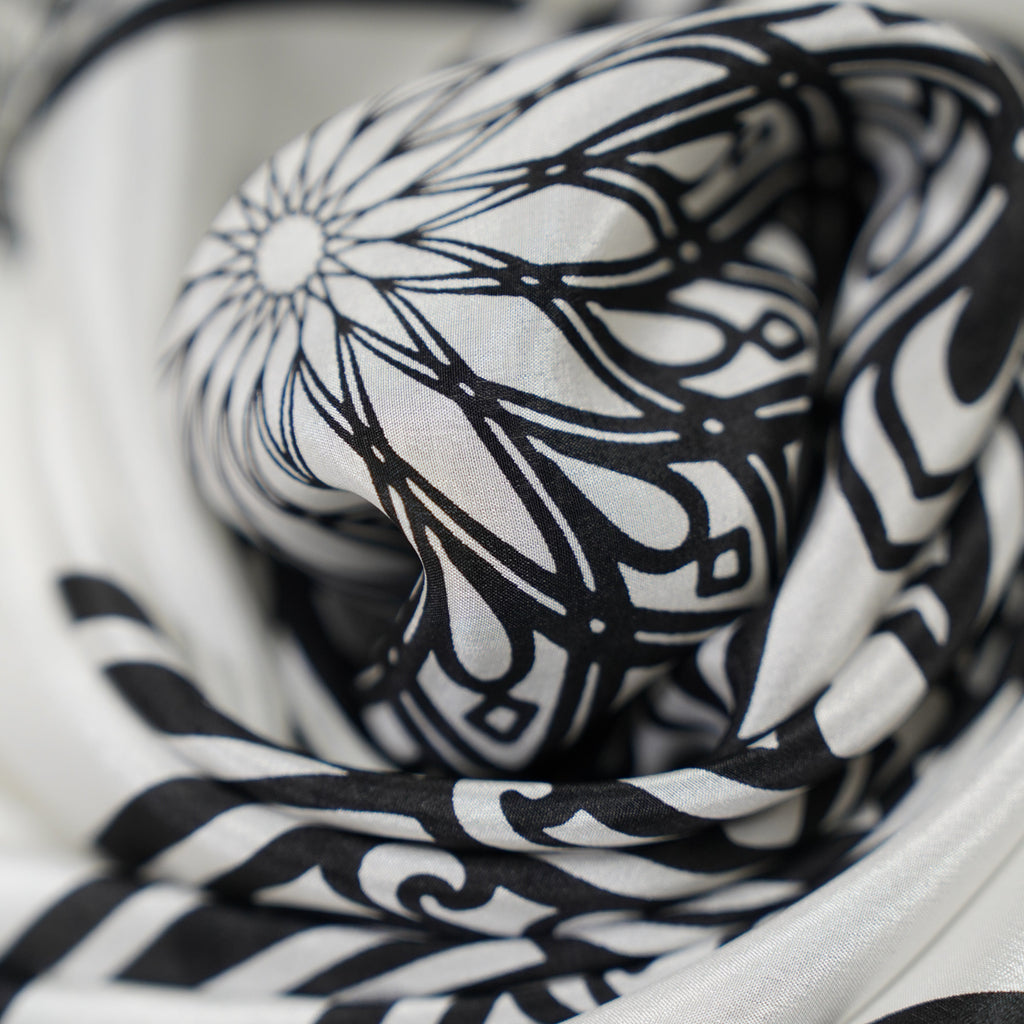 【LINEA〈リネア〉】は、洗練されたスタイルに“線”のような美しい輪郭を描き、装いに静かで凛とした存在感を添えるホワイトスカーフです。